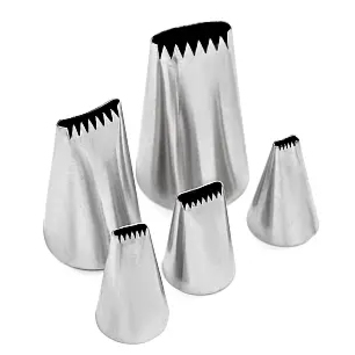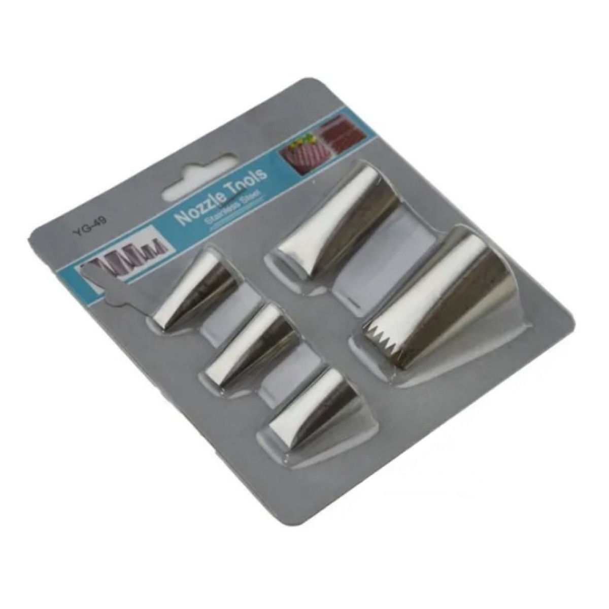 Комплект складається з 5 різних насадок типу “стрічка”, що дозволяє експериментувати зі стилем декору та товщиною лінії крему.