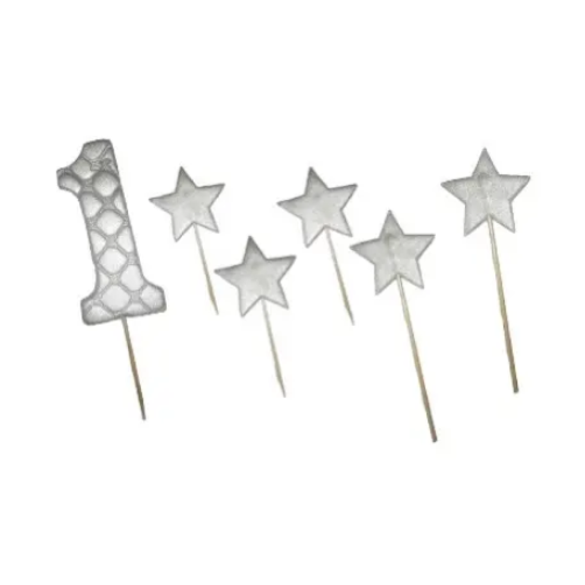 Набір кондитерських прикрас “Цифра 1 із зірочками“ срібна